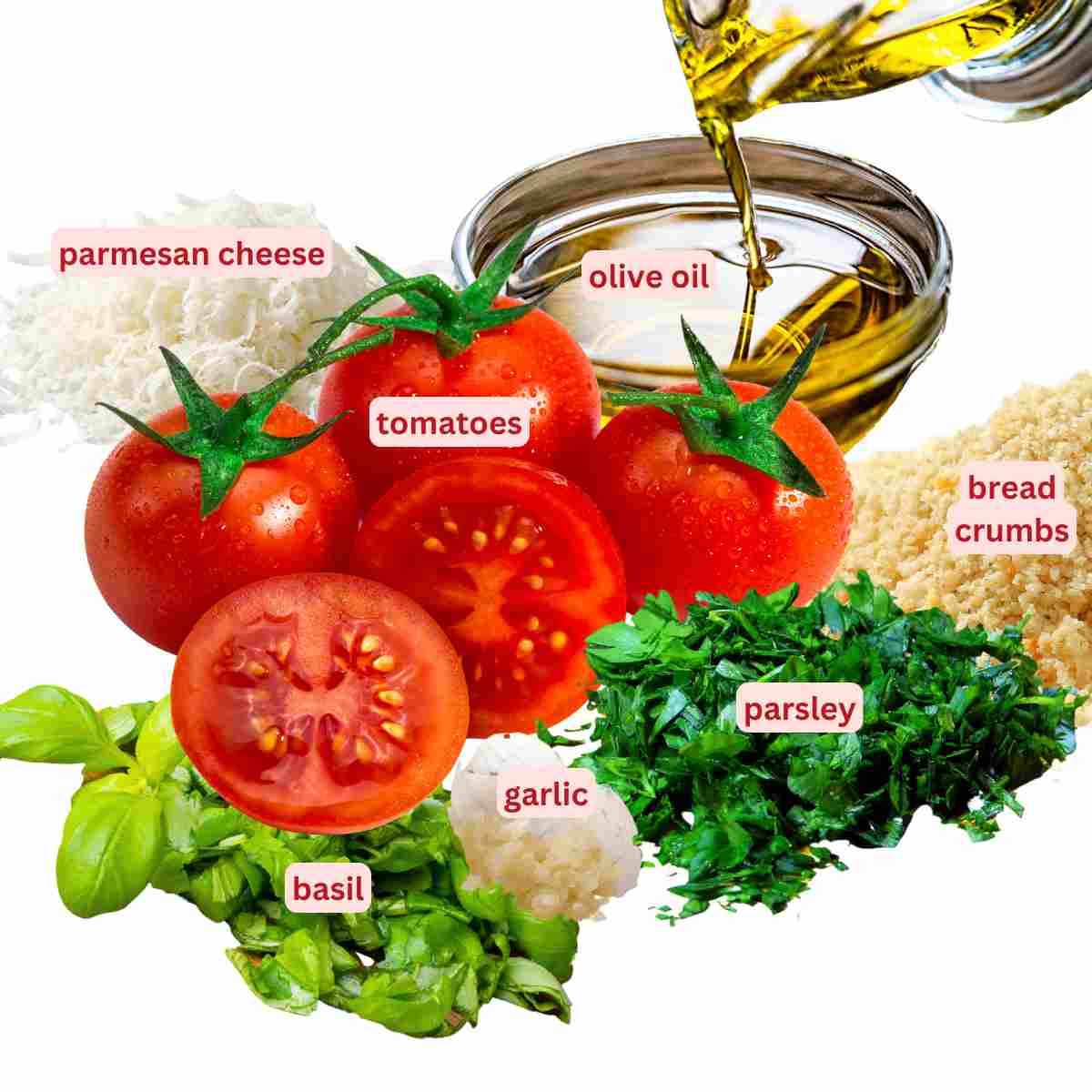 Oven-roasted tomatoes with cheese and herbs are an easy dish that sums up Provençal cooking: simple, to the point, and makes the most of fresh ingredients. Simply fresh tomatoes, parsley or basil, breadcrumbs, garlic, oil, and cheese, baked, and excellent!